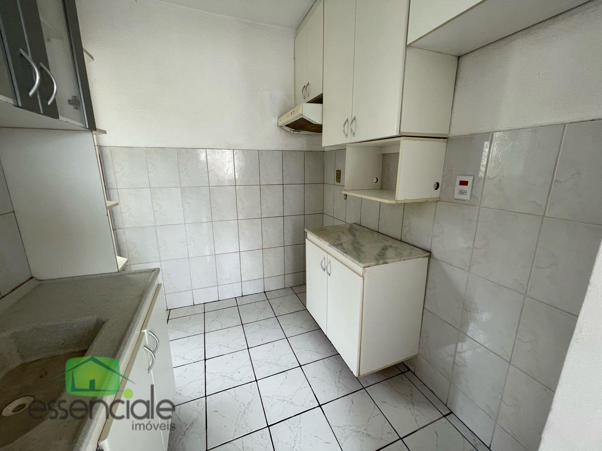 O imóvel conta com dois quartos com armários, piso em cerâmica em todo o apartamento, banheiro com armário, box em blindex e chuveiro, além de cozinha equipada com armários e coifa.